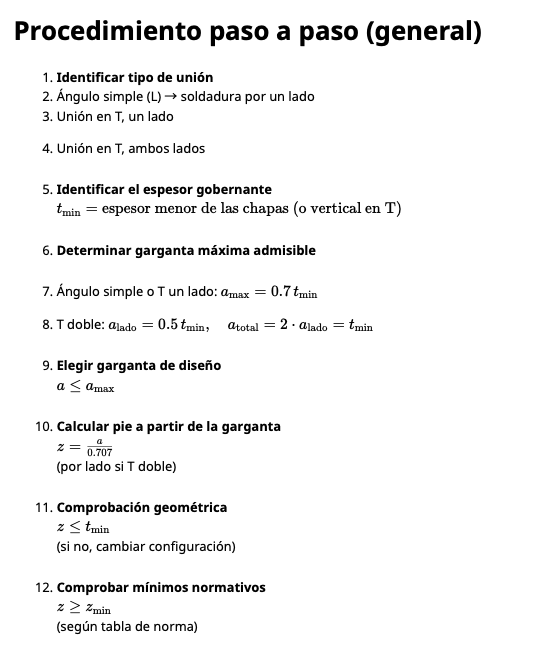 🛠️A la hora de calcular las dimensiones de soldadura siempre hay que ceñirse a las indicaciones dadas por el departamento de ingeniería, pero desde un punto de vista ilustrativo podemos acercarnos bastante siguiendo estas consideraciones básicas: