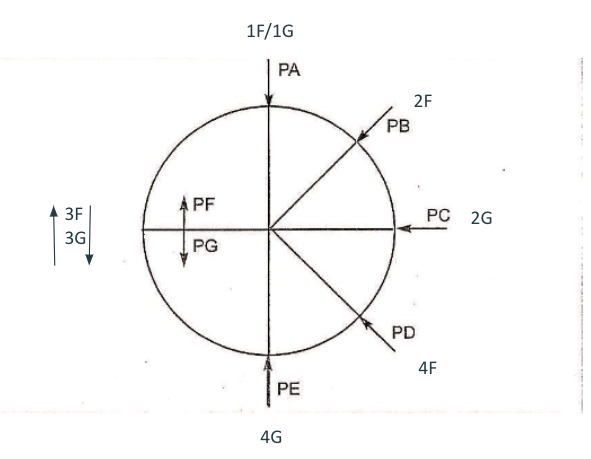 - 3F: vertical ascendente o descendente en ángulo interior.