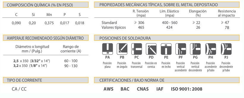 💡 Además, debes recordar que tanto la técnica como los parámetros de soldadura y los tipos de electrodos deben adecuarse a la posición. De esta forma, cada tipo de soldadura requiere una técnica con el electrodo, una inclinación del mismo y una regulación muy concreta. Parte de esta información la tienes siempre disponible en el paquete o caja de los electrodos:
