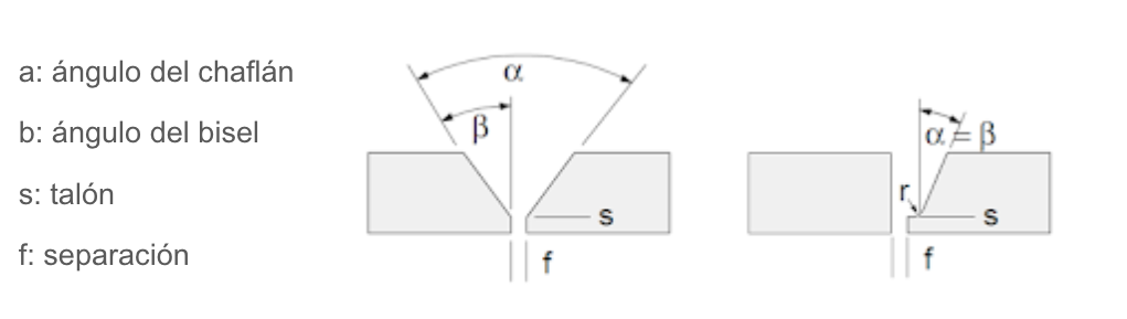Generalmente, el chaflán suele tener un ángulo de entre 60º y 70º. Además, el talón tiene la función de servir de soporte a la penetración, para que no sea excesiva, ya que si el bisel no tuviera este rebaje la soldadura lo fundiría con demasiada rapidez y no permitiría la práctica. Un talón adecuado puede tener una dimensión de entre 1mm y 1,5mm.