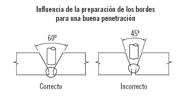 A partir de 3 o 4mm suele ser adecuado y por encima de 8mm se considera prácticamente imprescindible. En la siguiente imagen se representa una soldadura con y sin una penetración adecuada por un mal diseño del chaflán: