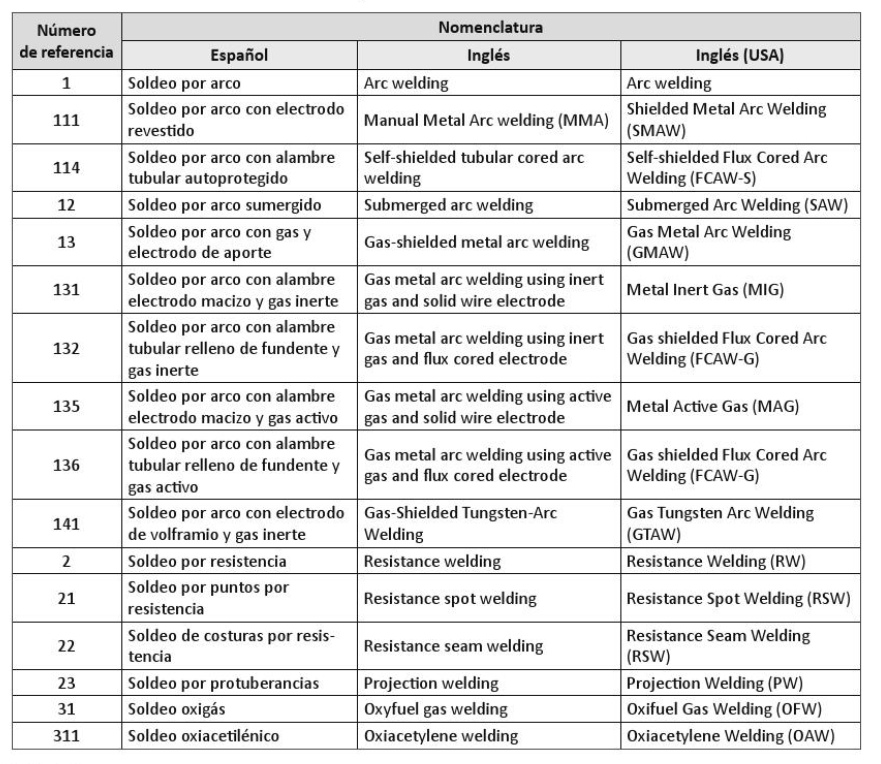 En la siguiente tabla puedes encontrar la simbología asociada a la tipología de soldadura: