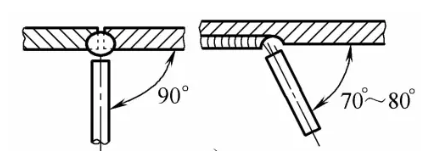 A continuación veremos una serie de recomendaciones con respecto a la inclinación del electrodo para las principales posiciones de soldadura.
